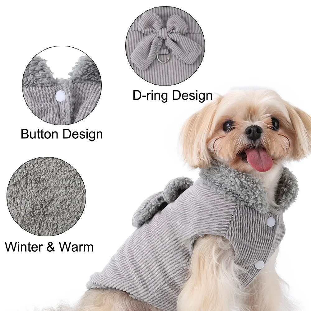 Pet Dog Coat Vest For Small Medium Dogs Cat Winter Warm Puppy Clothing With D-ring Cute Bow Kitten Costume Yorkshire Pug Outfits