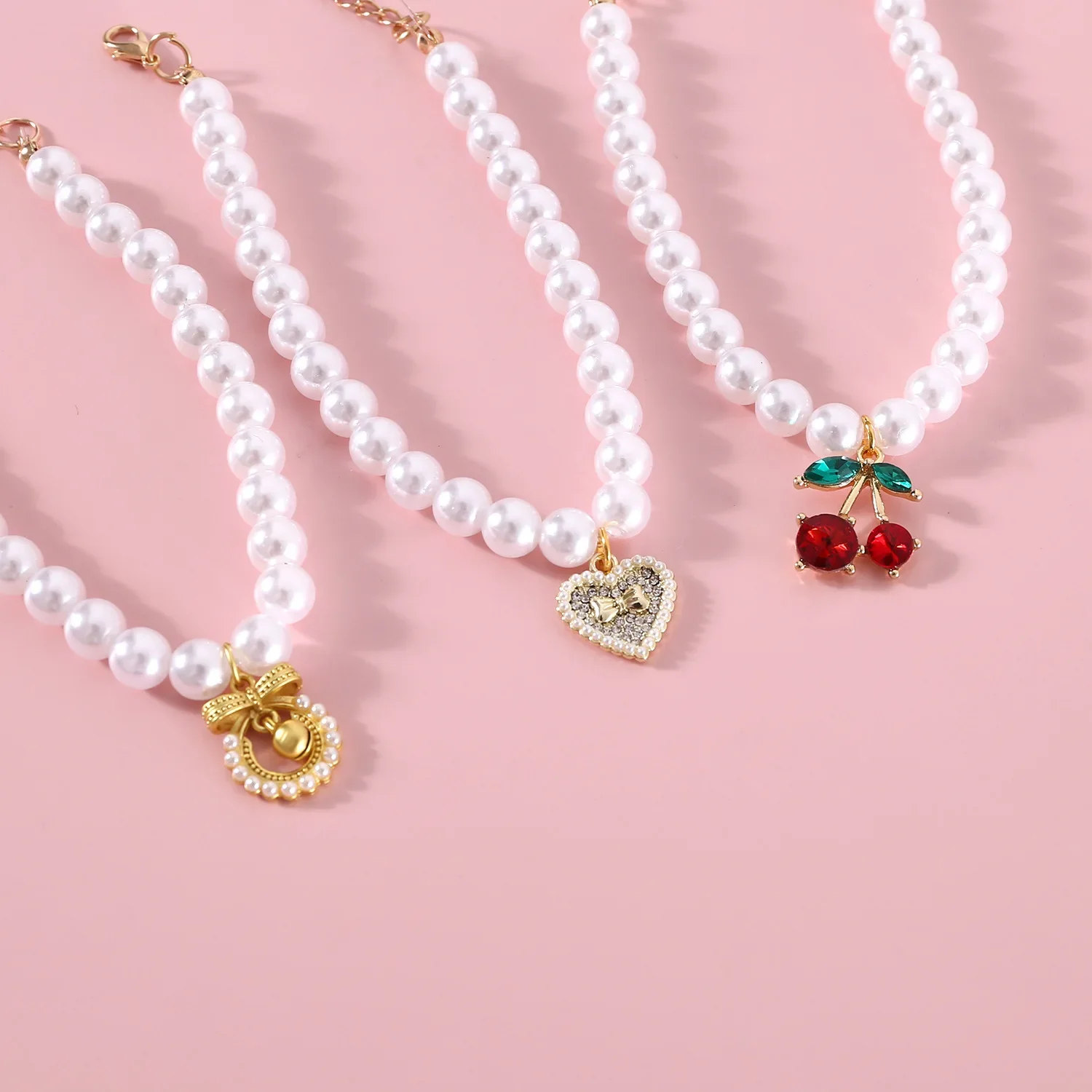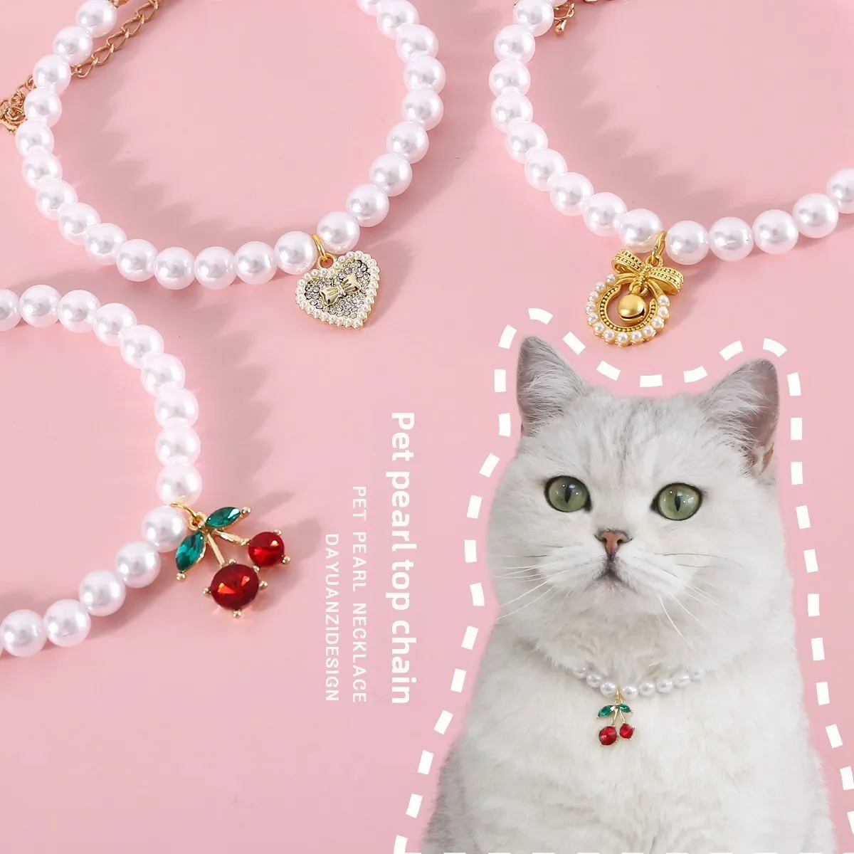 Pet Princess Style Pearl Cherry Love Bow Pendant Necklace Cat Bichon Dog Birthday Ins Wind Collar