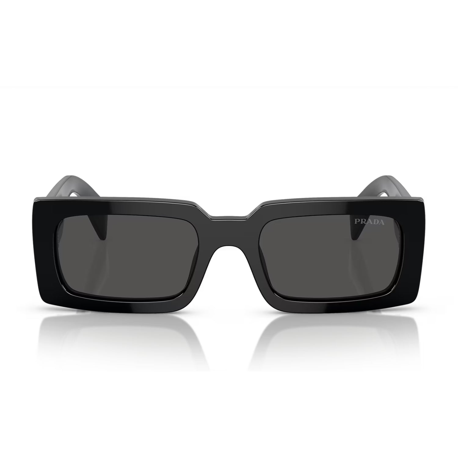 Gafas de sol rectangulares de color liso para mujer PRA07S de Prada: negro/gris oscuro
