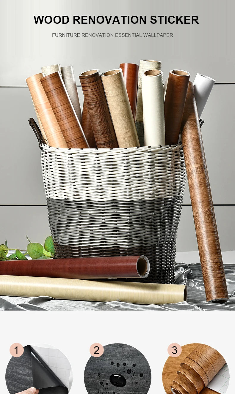 Rollo de papel tapiz autoadhesivo impermeable de PVC para muebles, armarios, película decorativa de vinilo, pegatinas de vetas de madera para decoración del hogar