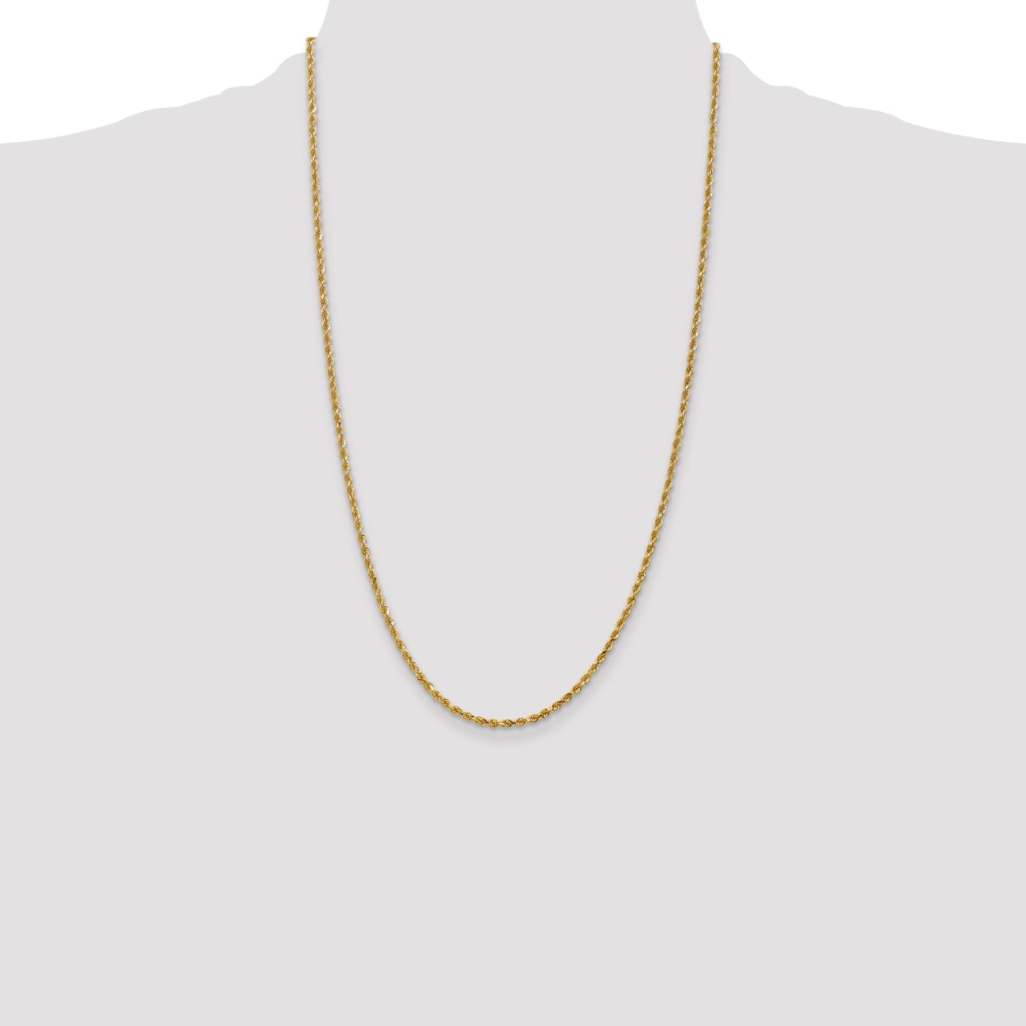 Atrevida y delicada, esta cadena tipo cuerda de oro amarillo de 14 quilates será un elemento elegante durante todo el año. Los detalles brillantes tallados con diamantes le dan un brillo duradero a este collar de cadena de 26 pulgadas de largo y 2,25 mm de ancho. El cierre de langosta garantiza un movimiento sin preocupaciones.