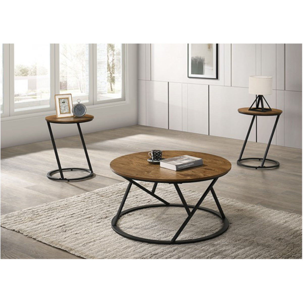 Ronde Table Set (3-Piece) with Metal Base by Furniture of America - Brown