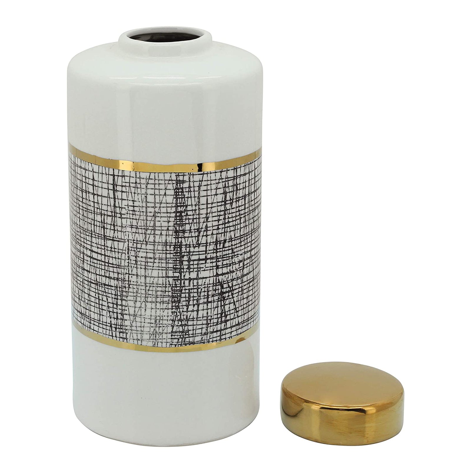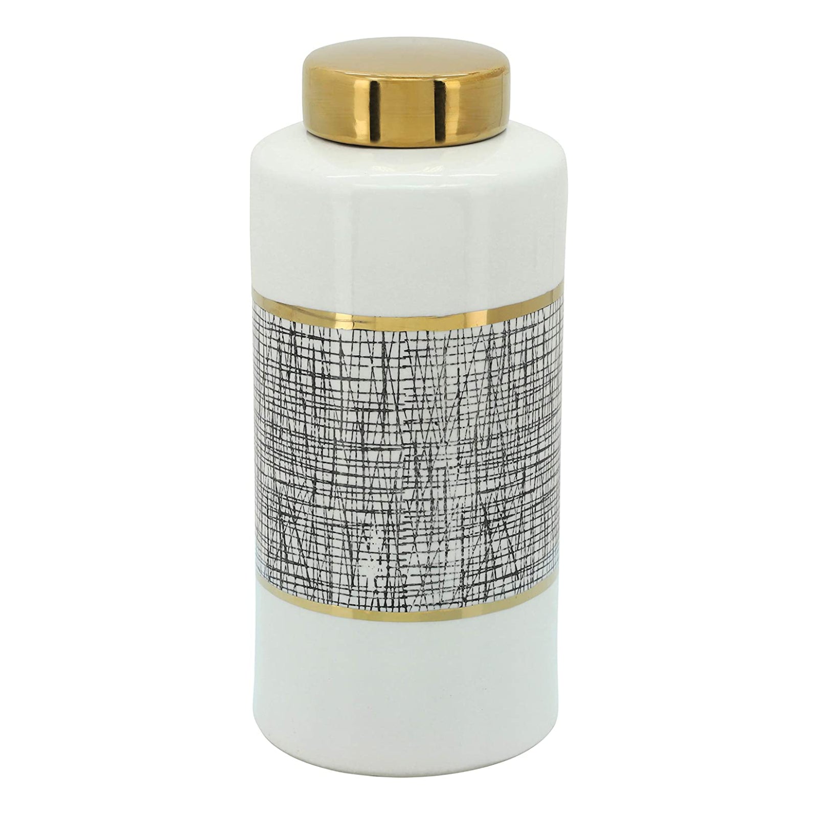 Tarro de cerámica contemporáneo de 13" con tapa de Sagebrook Home - Blanco/dorado
