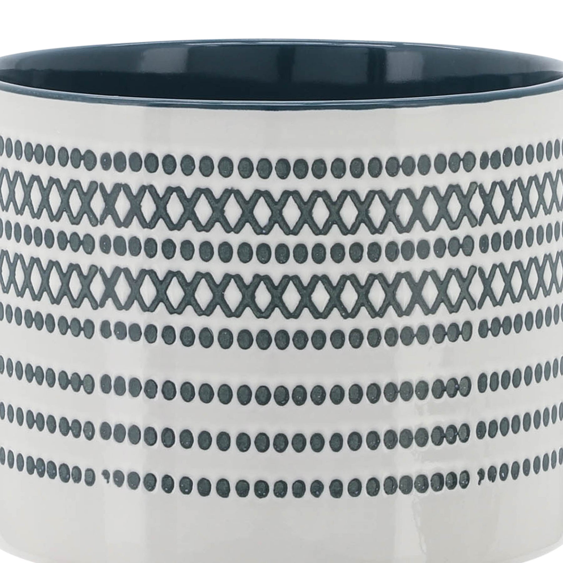 Esta maceta será el complemento perfecto para la decoración de su hogar u oficina. Puede complementar cualquiera de sus muebles existentes o usarse en cualquier rincón. Elaborada en cerámica, colocada sobre un soporte de madera, le aporta altura y estilo. El diseño de puntos azules texturizados le dará un toque llamativo, y el color interior a juego contrastará con sus hermosas plantas. El soporte no solo le aporta altura y estilo, sino que también es perfecto para proteger sus delicadas superficies. Perfecto para oficinas, dormitorios o cualquier rincón de su hogar.