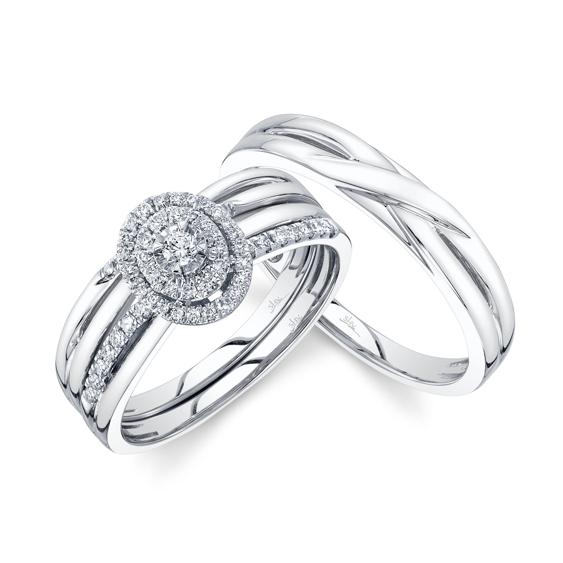 Conjunto de trío de diamantes redondos de 0,33 ct y oro blanco de 14 quilates