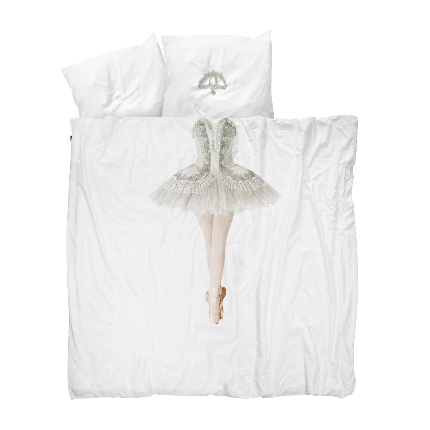 Juego de funda nórdica tamaño queen de 3 piezas con diseño de bailarina de Snurk, blanco y gris