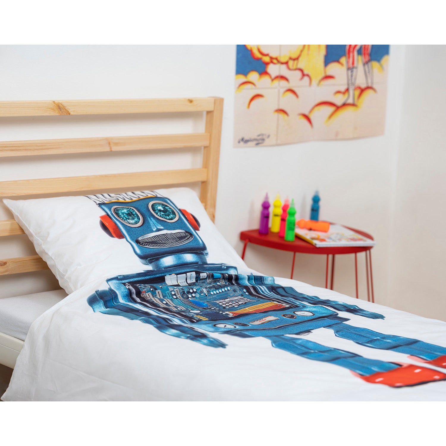 Enciende la imaginación de tu hijo con el juego de funda nórdica Snurk Twin Size Robot en blanco nítido y azul futurista. Este juego de 2 piezas invita a los más pequeños a un mundo de creatividad y aventura. Con un diseño de robot detallado, despierta sueños de exploración futurista. Diseñado para brindar comodidad y estilo, el juego de funda nórdica Snurk Robot transforma la hora de dormir en un emocionante viaje al futuro. Ideal para pequeños innovadores que aprecian las maravillas de la tecnología y la comodidad de la artesanía de calidad.