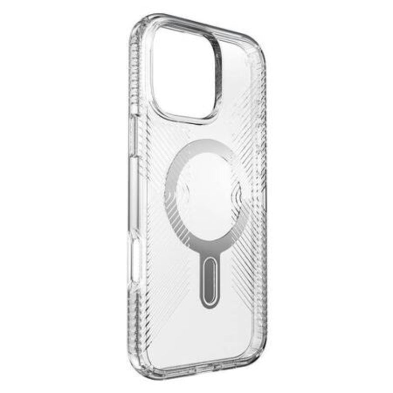Speck Refresh Presidio Perfect Clear Grip MagSafe Cases with Clicklock for Apple iPhone 16 Pro Max - Chrome/Silver