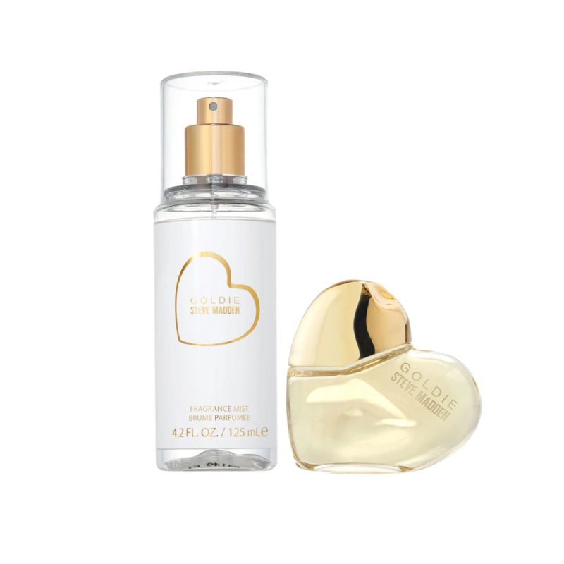 Elevate your fragrance collection with the Steve Madden Goldie Women's (2-Piece) Gift Set. This exquisite 2-piece set includes a 1.0 oz Eau de Parfum and a 4.2 oz Body Spray, both expertly crafted to provide long-lasting wear. The fragrance opens with refreshing notes of Bergamot, Violet Leaves, and Pear, transitioning into a floral heart that features Marigold, Jasmine, and Gardenia. The scent concludes with a warm and musky base of Sandalwood and Amberwood, creating a perfect balance of freshness and elegance. Ideal for gifting or personal pampering, this mild yet enduring fragrance allows you to make a statement with every spray, making it a must-have for any perfume aficionado.