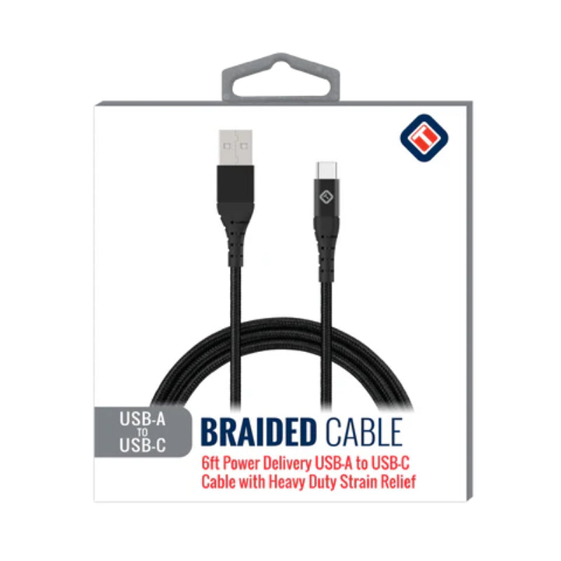 TekYa 6 ft USB-A to USB-C Braided Cable - Black