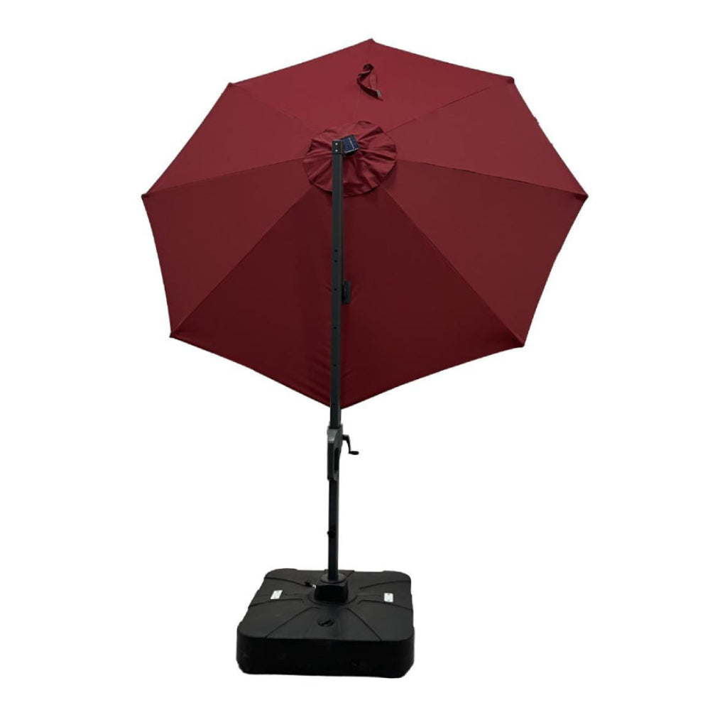 Esta sombrilla colgante con luz LED Roma cuenta con una base en forma de cruz con un sistema de rotación de 360 grados. El marco de la sombrilla tiene un revestimiento en polvo y una base de plástico.