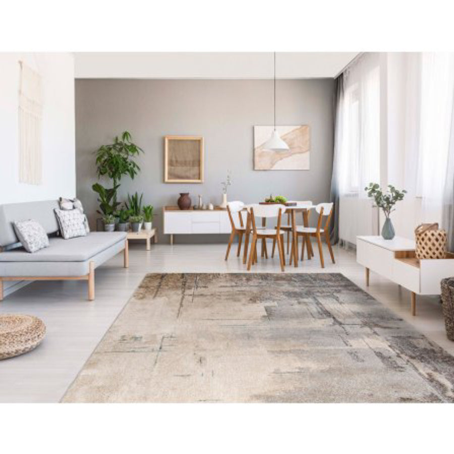 Alfombra rectangular tejida a máquina Barcelona-02 de Tufan, de 1,60 m x 2,30 m, en poliéster y polipropileno, color beige y verde azulado