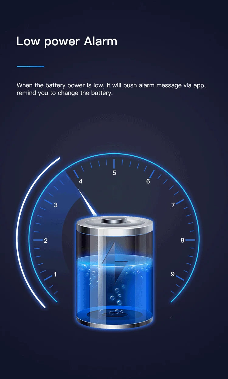 Cuando la batería esté baja, enviará un mensaje de alarma a través de la aplicación para recordarle que debe cambiar la batería.