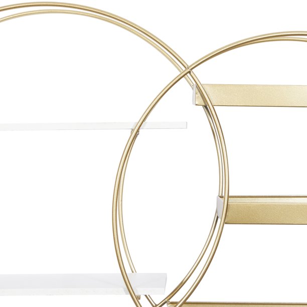 Este estante de pared redondo dorado te ofrece una solución de almacenamiento perfecta y ofrece un espacio de estar limpio y cómodo. Aprovecha el espacio de la pared para guardar cosas adicionales en cualquier lugar de tu hogar. Muestra tus recuerdos favoritos con estilo con esta estantería.