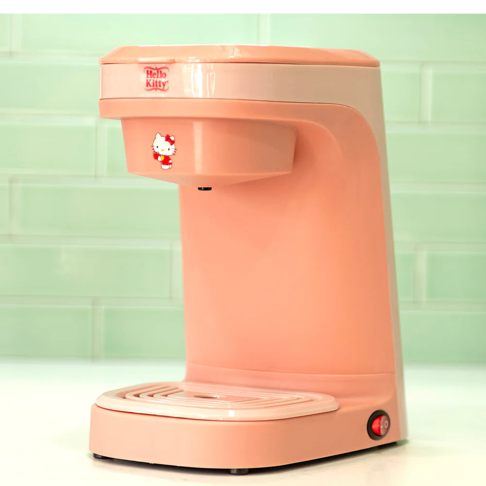 The Uncanny Brands CM3KITHK1 Hello Kitty Single Cup Coffee Maker Gift Set with 2 Mugs - Peach is the perfect addition to any coffee lover's kitchen. This delightful coffee maker not only brews a delicious 8 oz. cup of coffee in under 90 seconds but does it with the adorable charm of Hello Kitty. Designed for those who appreciate both functionality and style, this BPA-free machine is ideal for quick morning fixes or cozy afternoon breaks. Whether you're a collector or simply someone who loves a good brew, the included matching mugs make every coffee experience sweeter and more enjoyable.