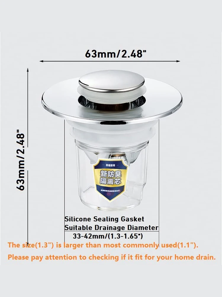 【Preste atención al tamaño del drenaje】 No necesita un plomero ni ninguna herramienta, simplemente saque el tapón de drenaje viejo y coloque este nuevo tapón de drenaje con la junta tórica, luego colóquelo en el orificio de drenaje. Preste atención al tamaño del drenaje y su cubierta protectora (1,3 "~ 1,65"). NOTA: Asegúrese de medir el orificio de drenaje del fregadero antes de comprarlo.