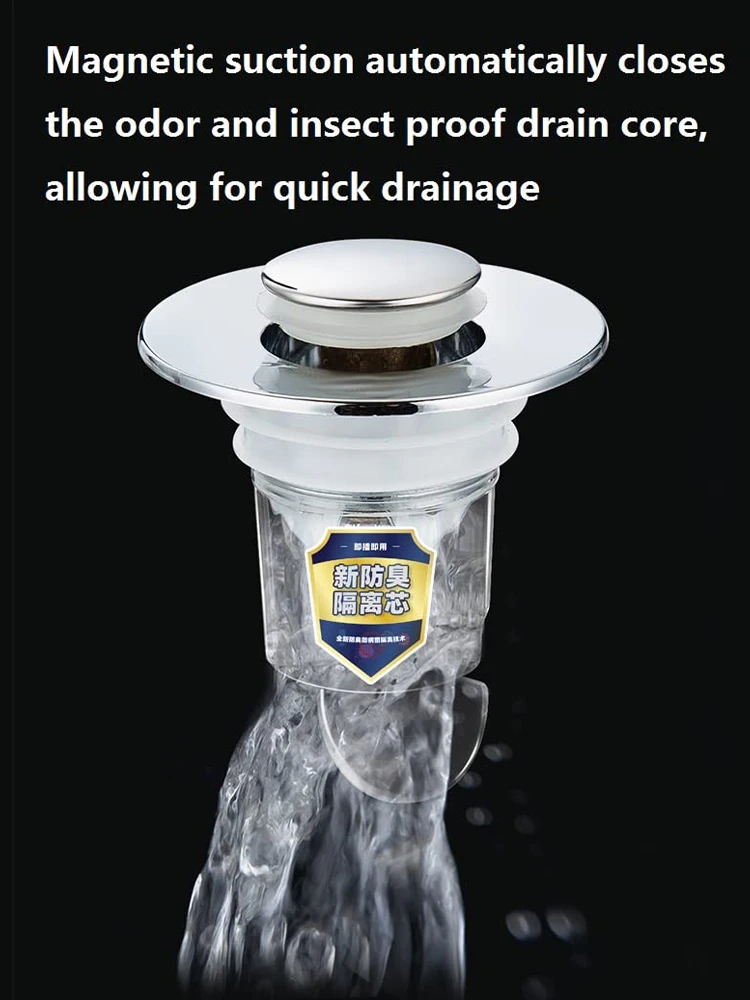 【Tapón para lavabo con cubierta protectora】 El tapón para lavabo de baño AJOMAN es adecuado para lavabos de uso casi universal (1,3"~1,65") con cubierta protectora. La cubierta protectora evita que suban los olores y que entren pequeños insectos como las cucarachas. La succión magnética cierra automáticamente el núcleo del desagüe a prueba de olores e insectos, lo que permite un drenaje rápido.