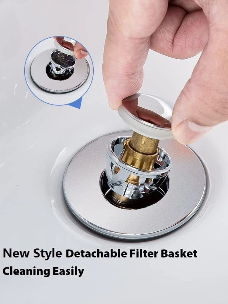 【Nuevo diseño de desagüe en forma de embudo】 El nuevo tapón de desagüe emergente para fregadero en forma de embudo tiene un filtro de canasta antiobstrucción en el interior, que evita de manera efectiva que se obstruyan los desagües con monedas, cabello, anillos u otros objetos extraños. Simplemente gire suavemente la tapa elástica y retire el núcleo emergente para limpiar fácilmente la materia extraña.