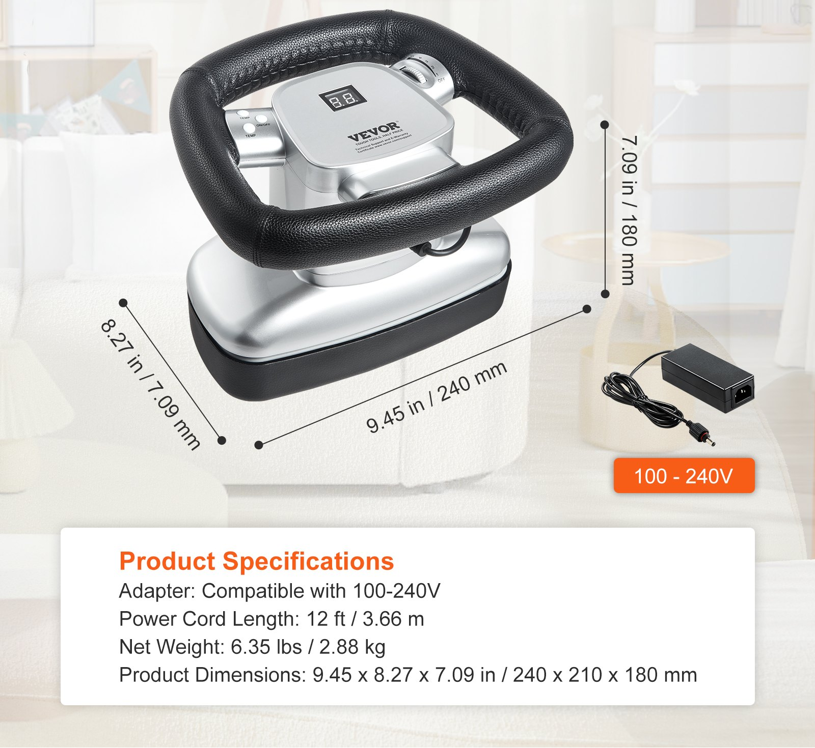 Power Cord Total Length: 12 ft / 3.66 m,Heat Therapy Displayed Temperature: 95-185°F (35-85°C),Package Dimensions: 12.2 x 9.05 x 10.24 in / 310 x 230 x 260 mm,Rated Power: 65W,Massage Frequency: 400-4600rpm,Temperature for Massage Cushion: 68-149°F (20-65°C),Adapter Connection: DC Plug with Locking Function,Rated Voltage: AC100-240V