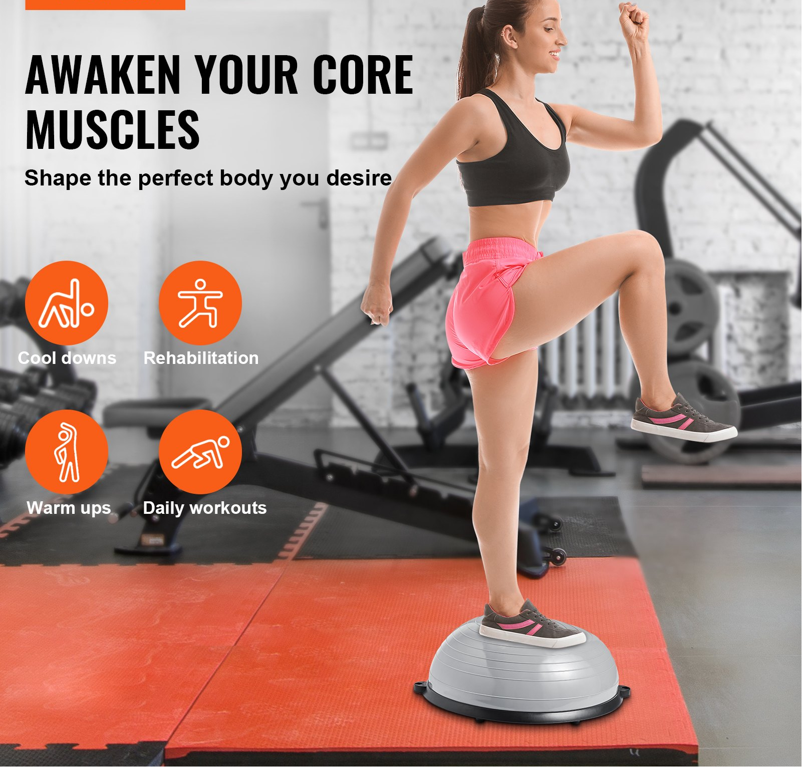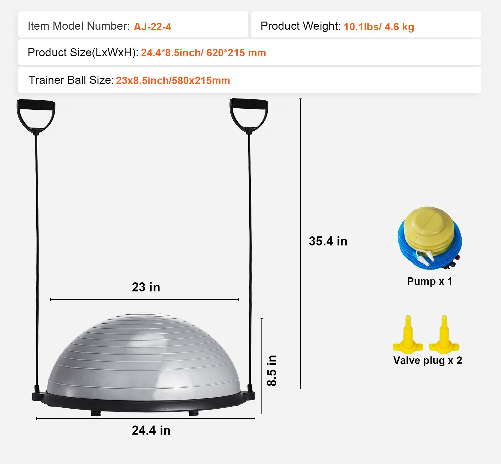 Half Exercise Ball Trainer, 23 inch Balance Ball Trainer, 660lbs Capacity Stability Ball, Yoga Ball with Resistance Bands & Foot Pump, Strength Fitness Ball for Home Gym, Full Body Workout, Gray