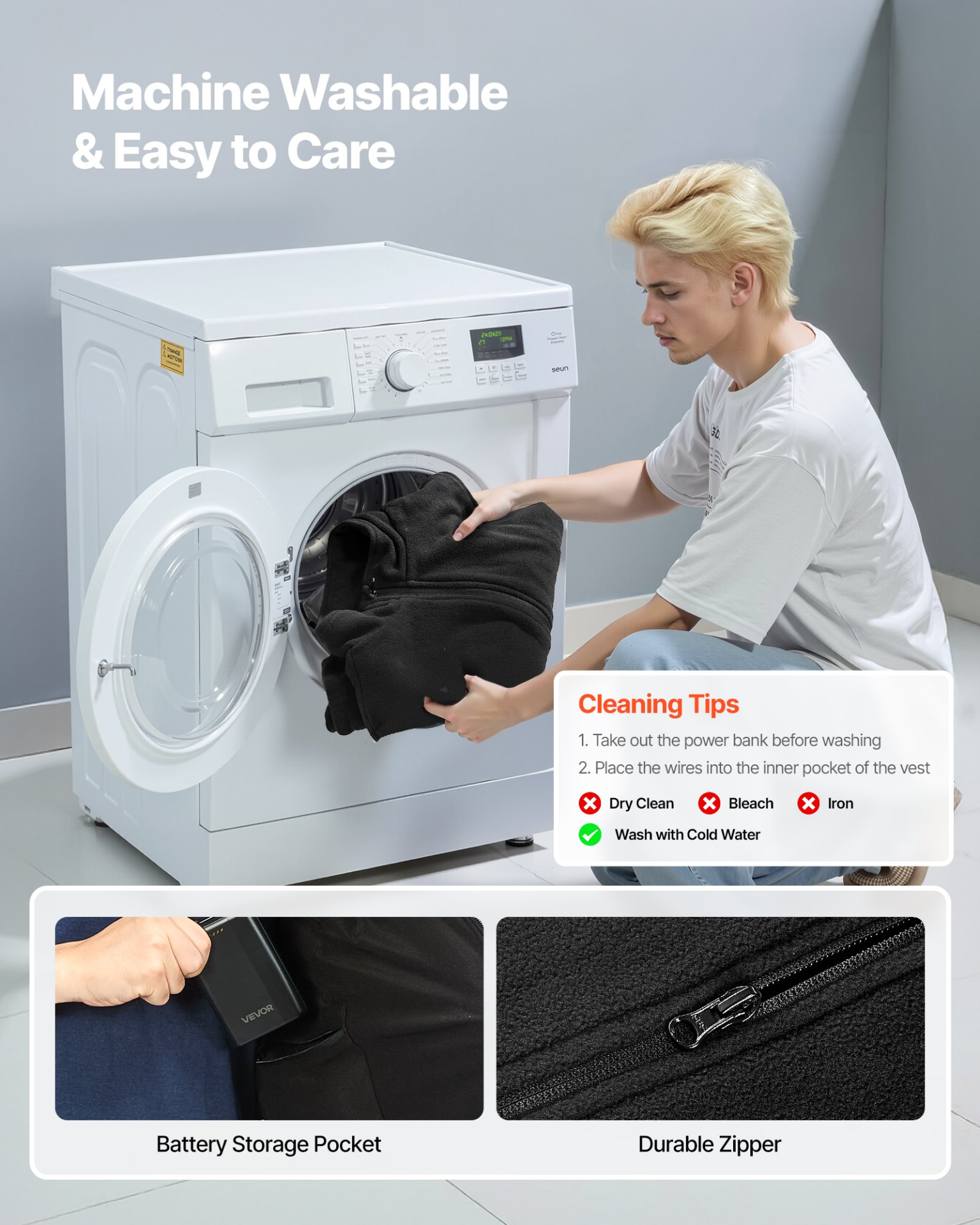 Number of Heating Zones: 6 Zones,Heating Zone Locations: 2 x Chest, 2 x Shoulders, 1 x Back, 1 x Neck,Size: XL,Temperature Settings: High: 140 °F/60 °C, Medium: 122 °F/50 °C, and Low: 104 °F/40 °C,Item Model Number: RBX-004,Heating Duration: High: 3.8 h, Medium: 6.5 h, and Low: 8.5 h,Input Voltage: 7.4V,Product Dimensions: 31.89 x 25.20 in/810 x 640 mm,Net Weight: 2.09 lbs/0.95 kg