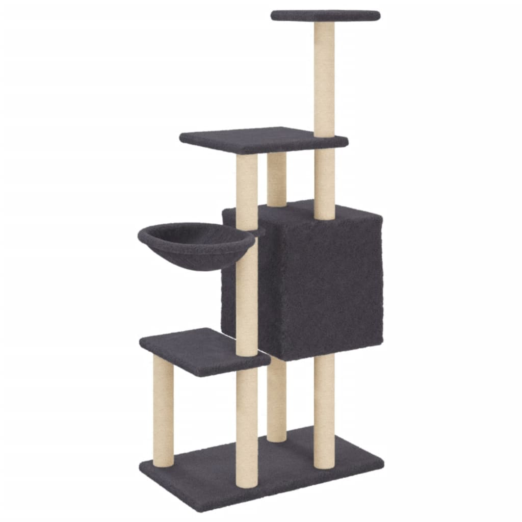 vidaXL Cat Tree Dark Grey Engineered wood, plush, sisal 51.6 in tall