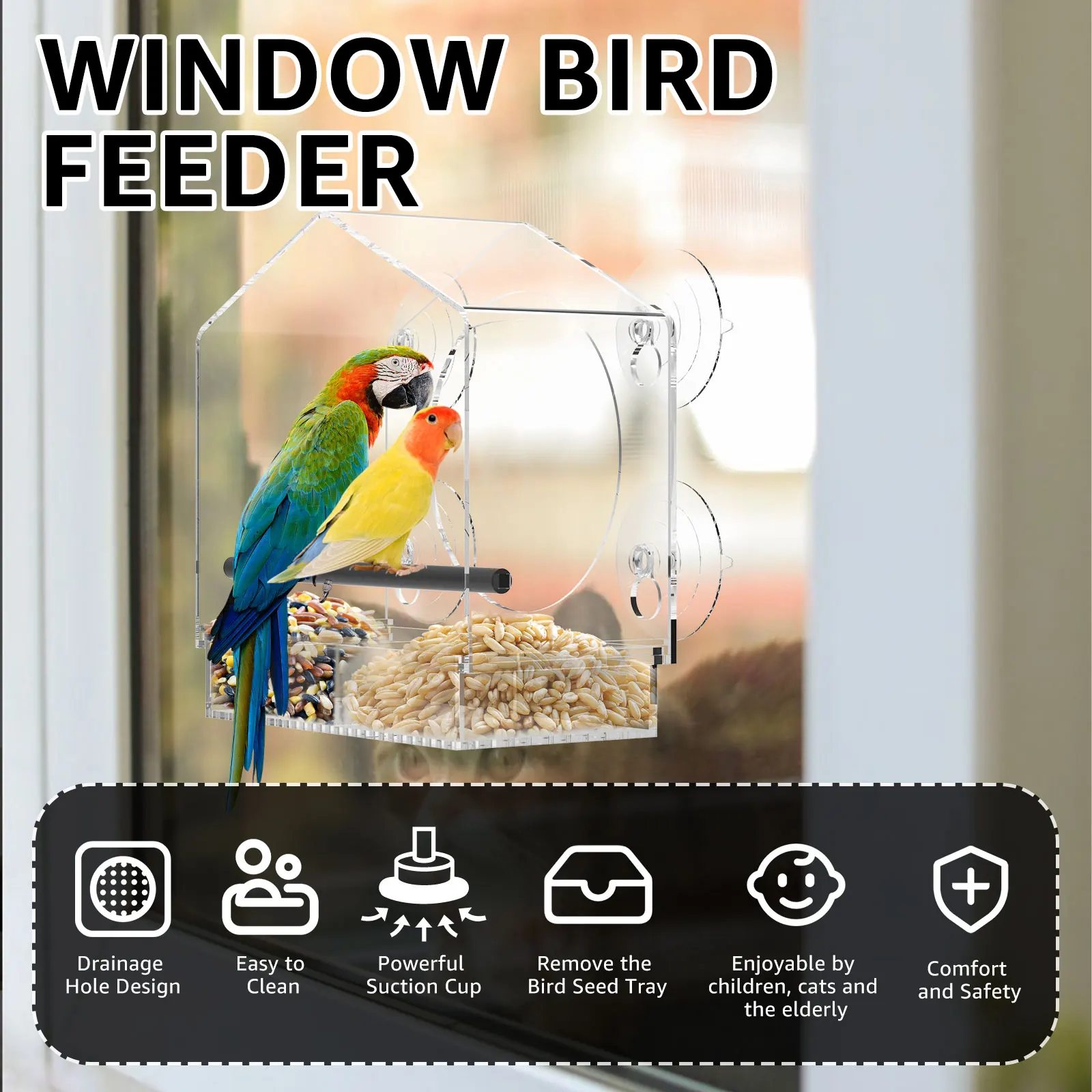 Window Bird Feeder Acrylic Clear Bird House with 4 Suction Cups Large Capacity Outdoor Bird Feeders Transparent Food Dispenser