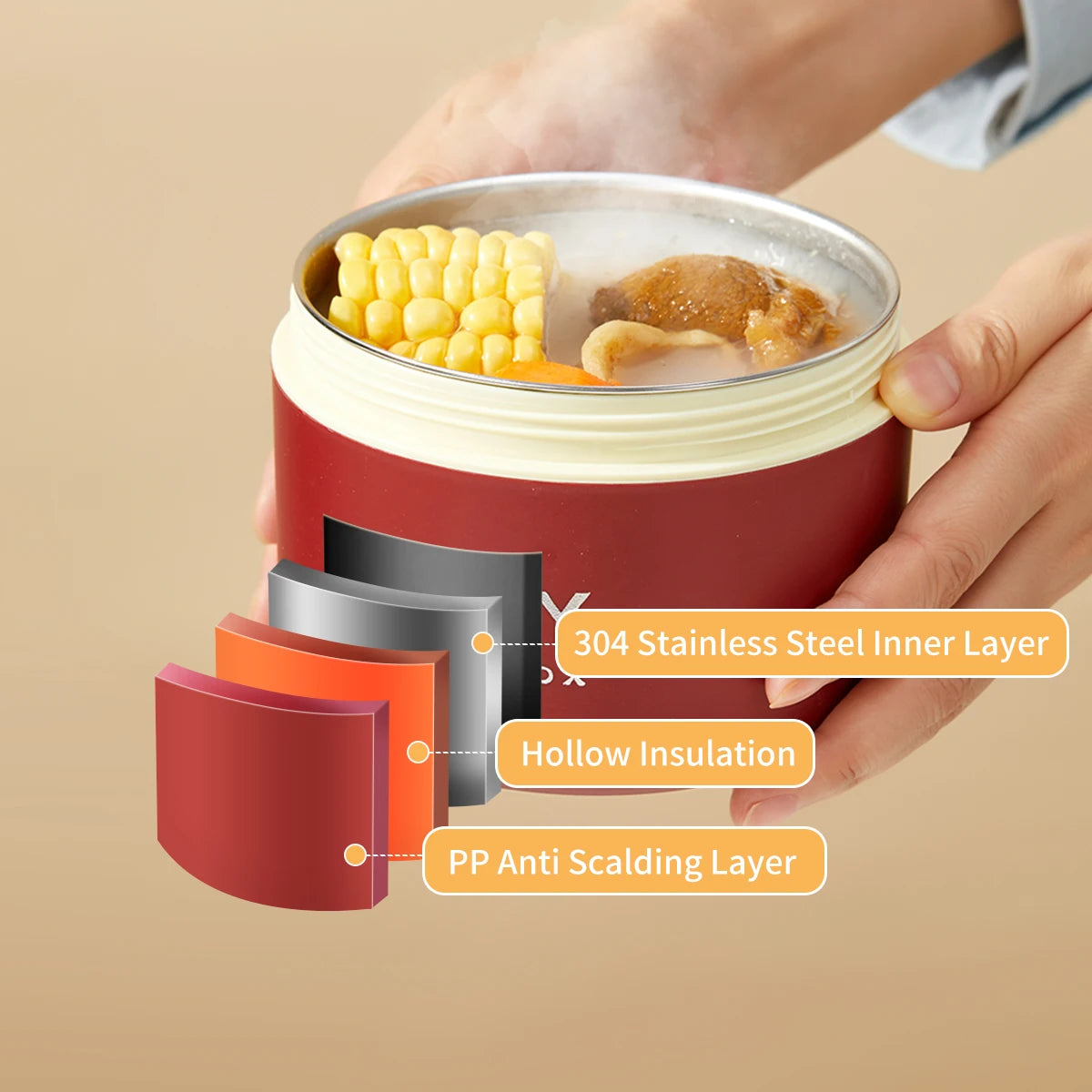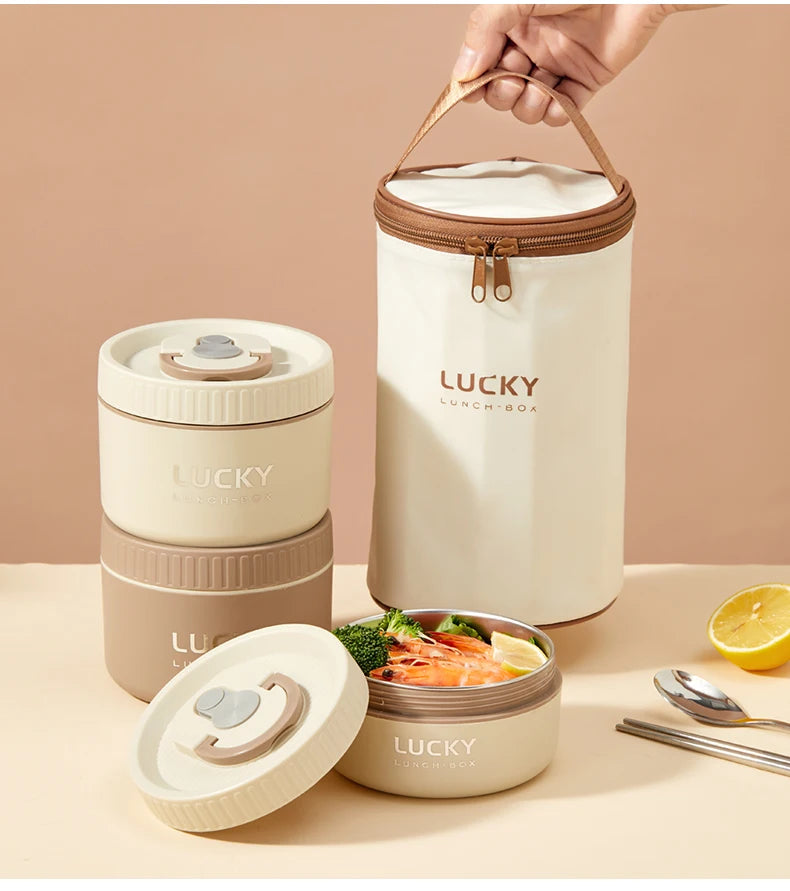 WORTHBUY Portable 304 Stainless Steel Insulated Bento Lunch Box With Thermal Bag Cutlery Leak Proof Container Set