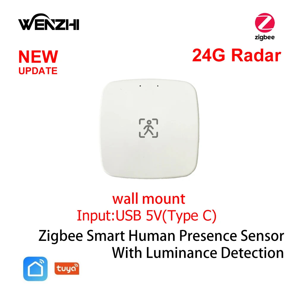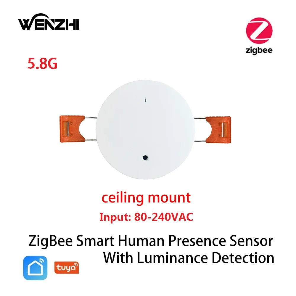 Sensor de movimiento de presencia humana ZigBee Wifi MmWave con detección de luminancia/distancia 5/110/220 V Tuya Smart Life Home Automation