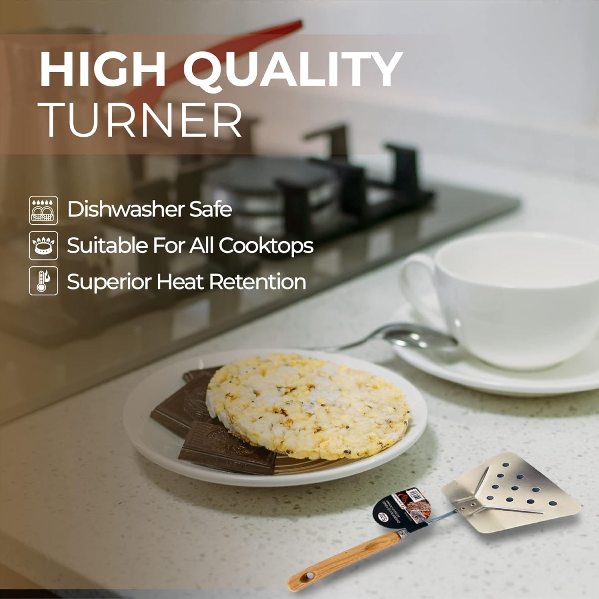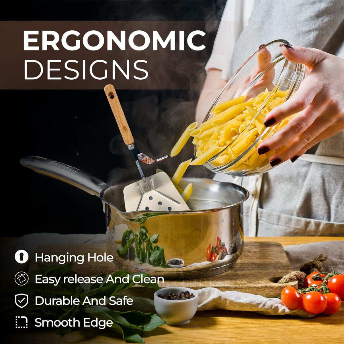 This solid turner spatula is crafted from premium food-grade bamboo wood, making it safe for use with non-stick cookware. It resists heat, won’t melt or deform, and protects your pans from scratches. The ergonomic handle ensures a secure, comfortable grip, while its lightweight yet durable build makes it perfect for flipping, stirring, serving, or tasting food. Eco-friendly and easy to clean, it’s an ideal addition to any modern kitchen.