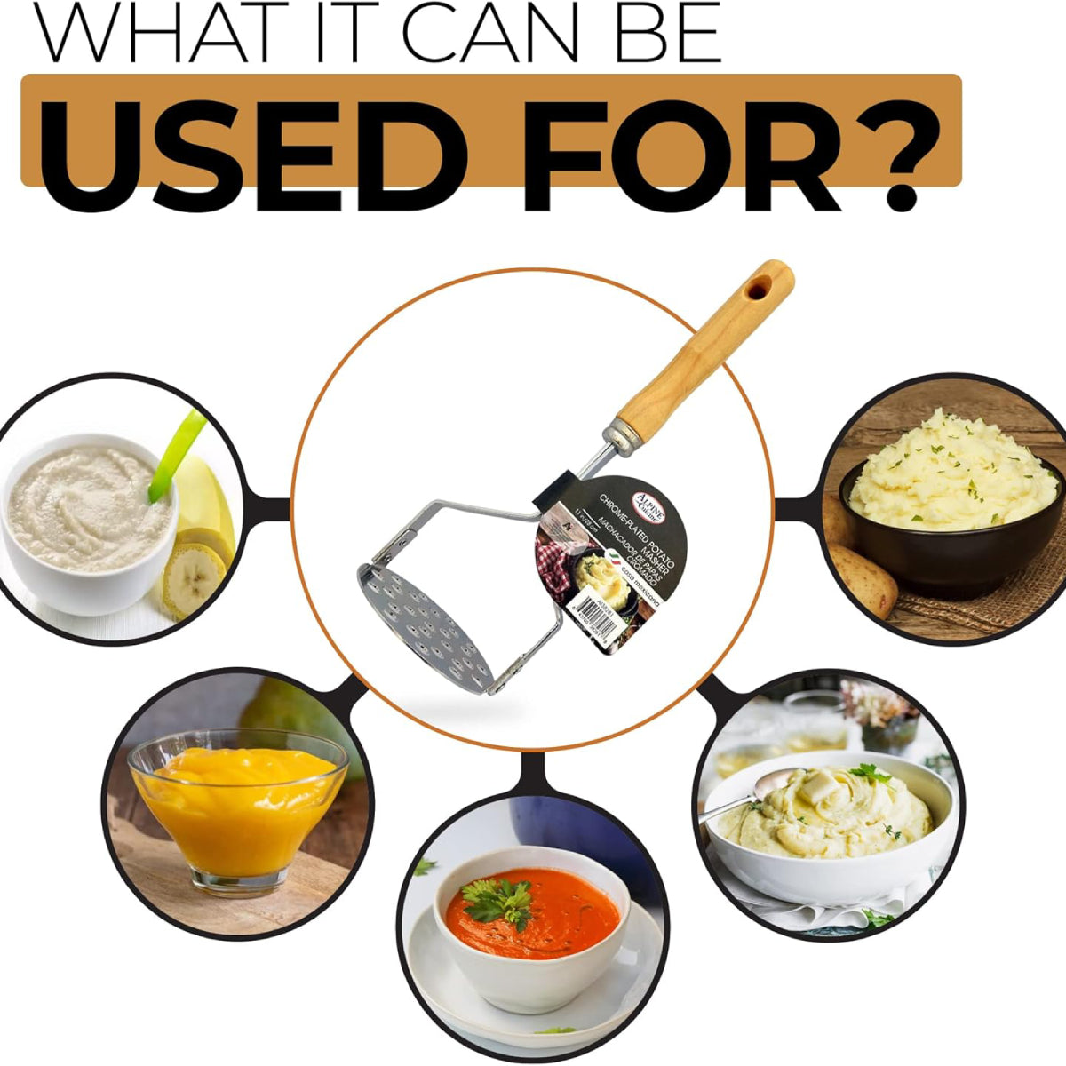 - Heavy-duty stainless steel with a wide mashing plate for easy use
