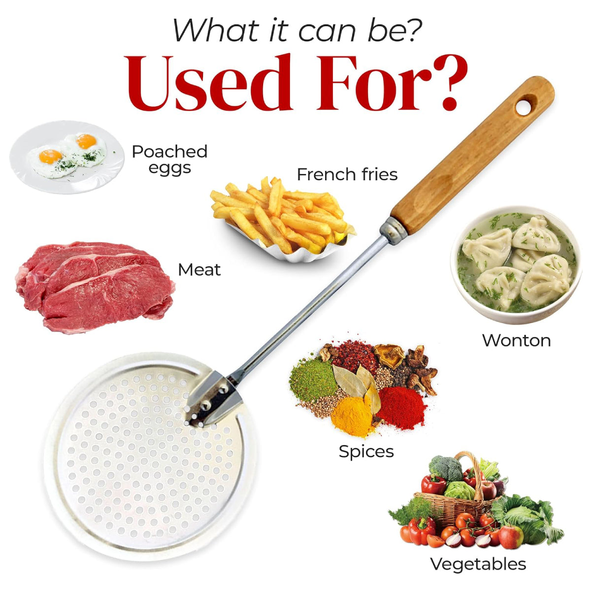 - Ideal for frying, boiling, or lifting food from hot liquids