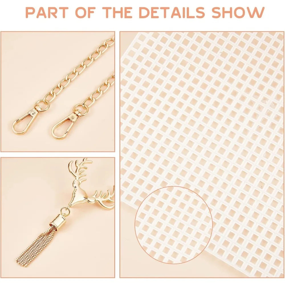 DIY Knitting Crochet Bag Kit with Mesh Plastic Canvas Sheets and Ribbons for Crafting Stylish Shoulder Bags