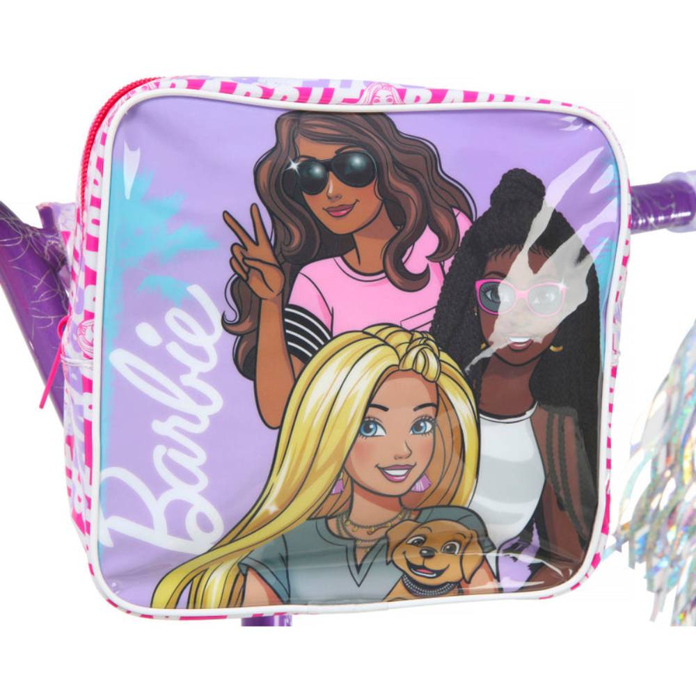 - Features Barbie designs on frame, chainguard, and training wheels