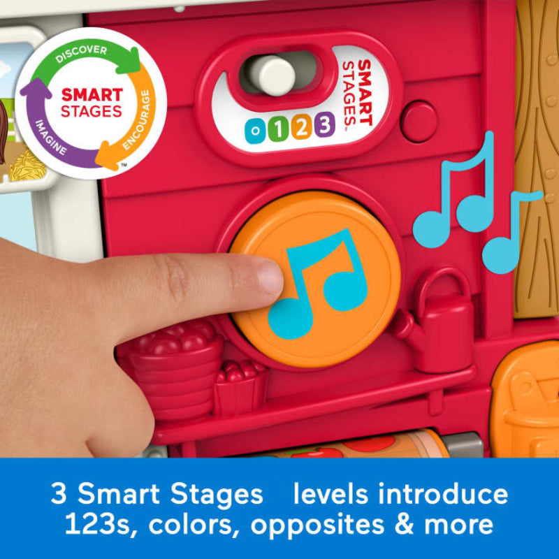 - Interactive two-story barn packed with Smart Stages learning fun.