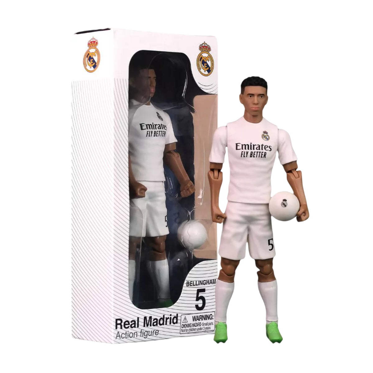 The Banbo Toys Sockers Real Madrid Bellingham 8" Collectible Soccer Action Figure is a must-have for fans of Jude Bellingham and Real Madrid. Standing at 8 inches tall, complete with realistic facial features and detailed sculpting. With 10 points of articulation, you can pose the figure to recreate Bellingham's signature moves.