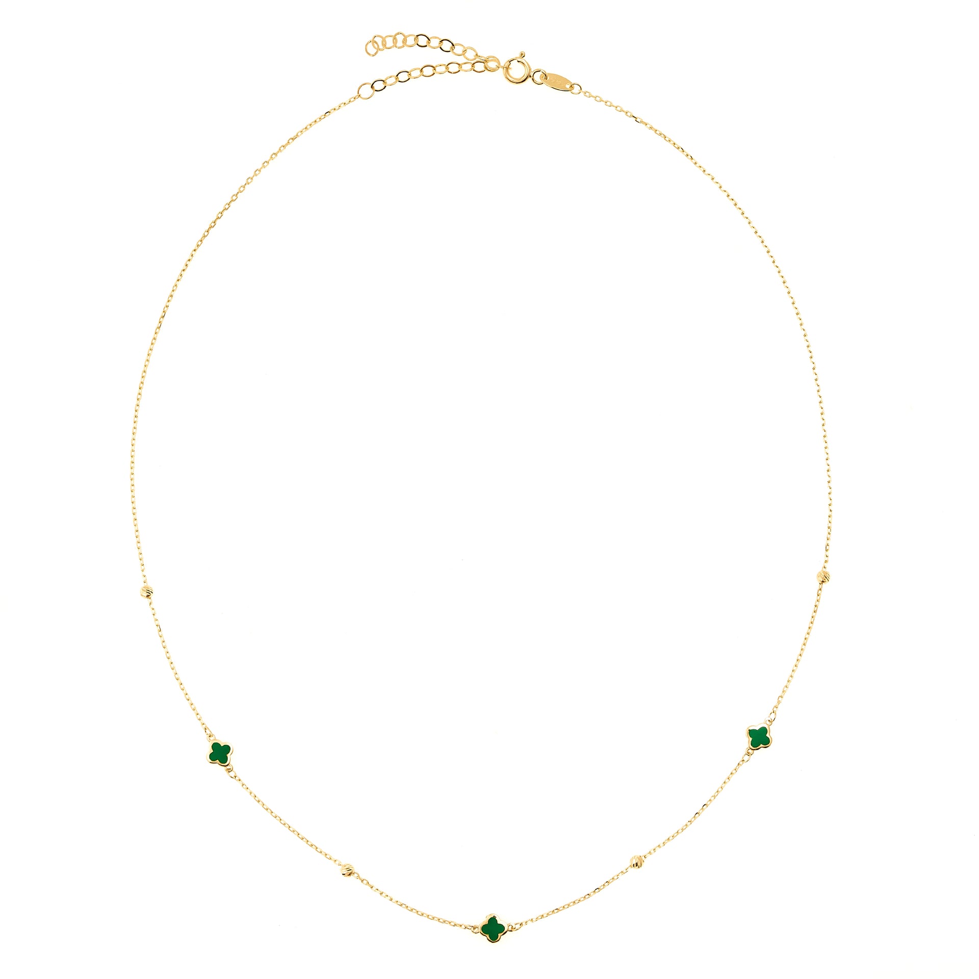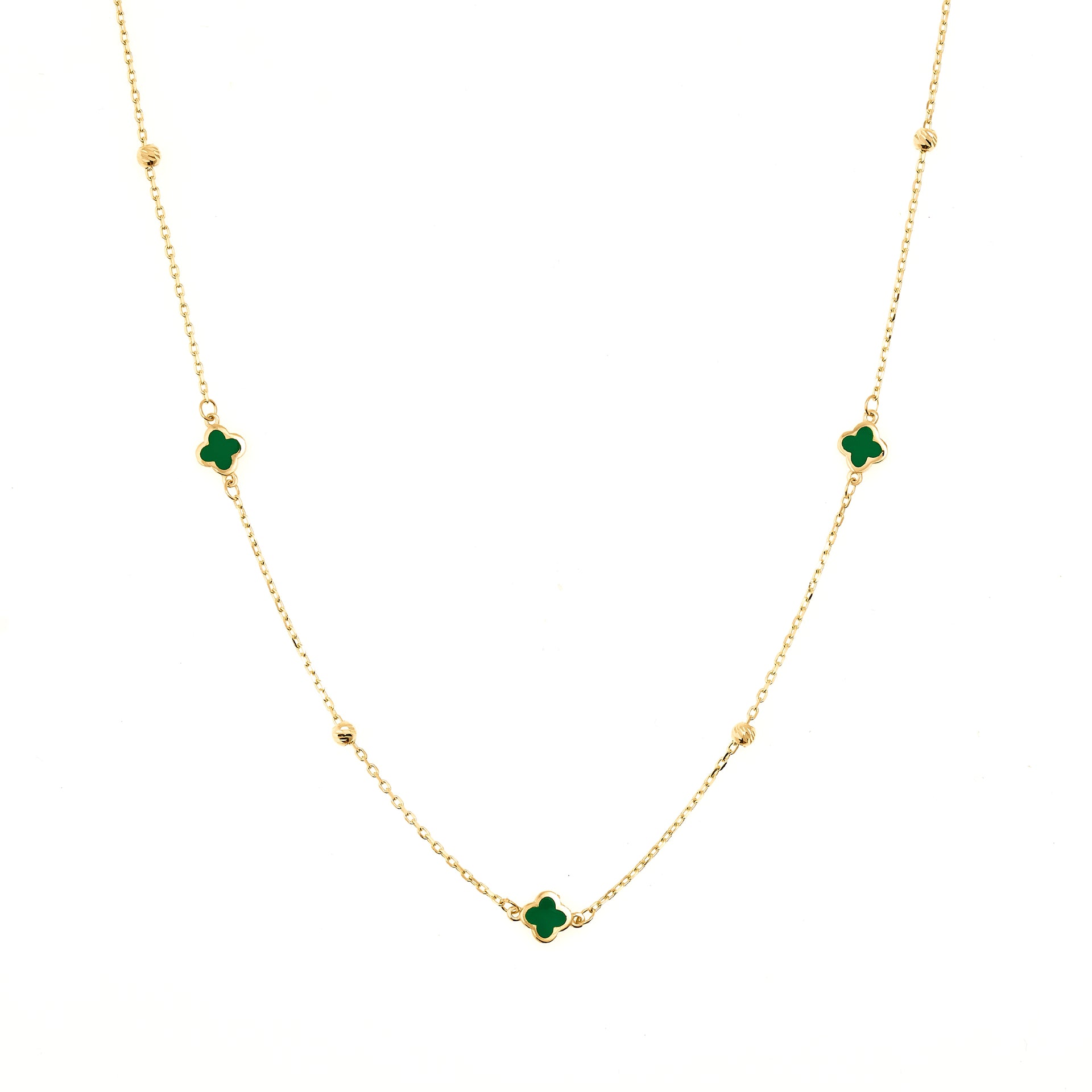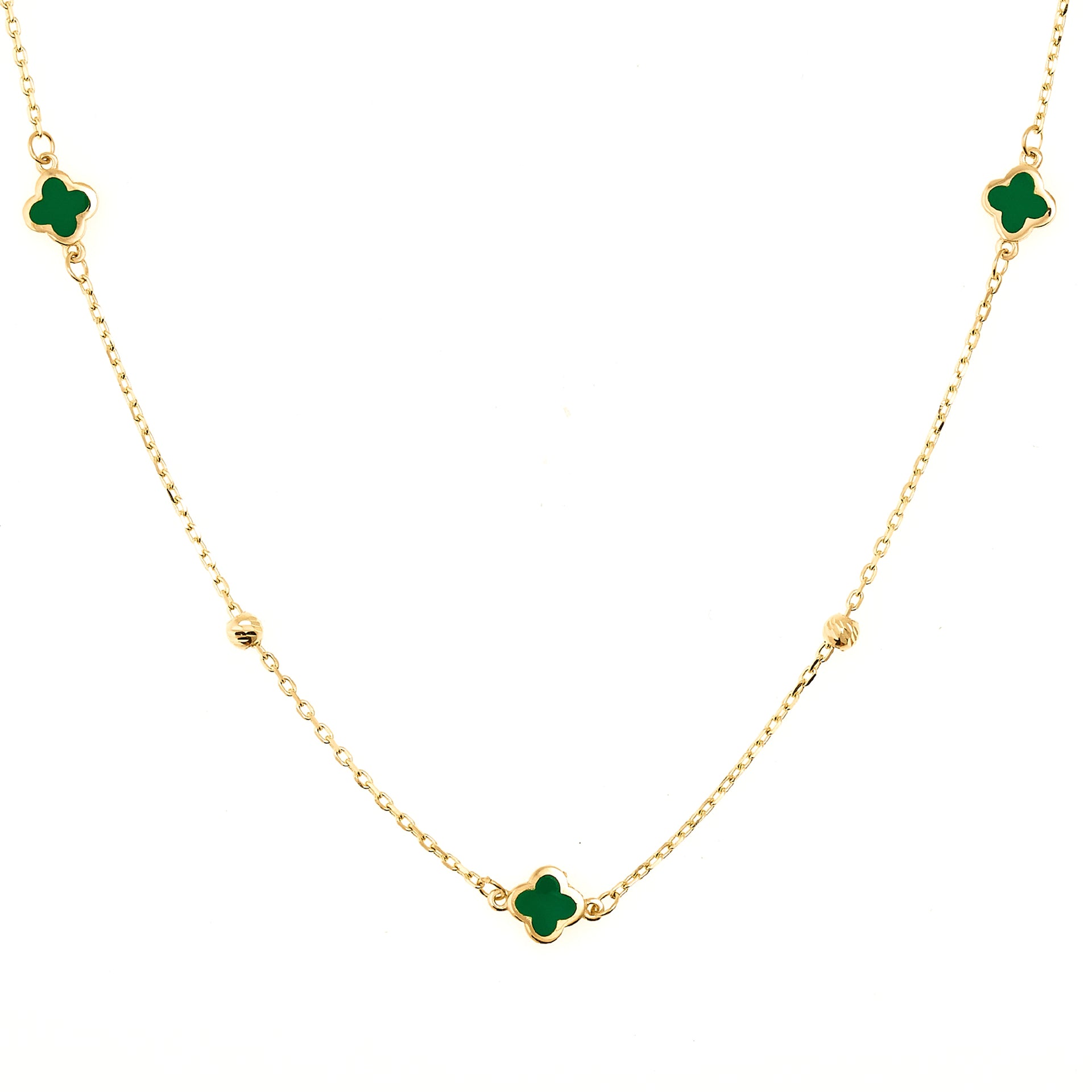 14K Yellow Gold Green Enamel Clover Necklace