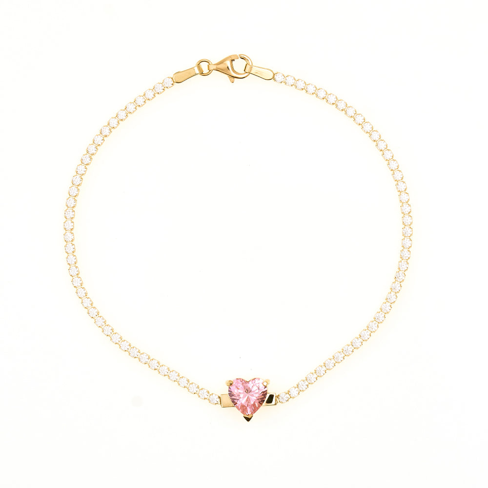 Elevate your jewelry collection with this 14K yellow gold women’s tennis bracelet, featuring a dazzling heart-shaped cubic zirconia centerpiece. The delicate chain is adorned with sparkling round CZ stones, creating a continuous shimmer with every movement. Perfectly crafted for elegance and comfort, it adds a touch of romance to any outfit. The secure clasp ensures a confident fit, making it ideal for both everyday wear and special occasions. A timeless piece that combines sophistication with feminine charm.