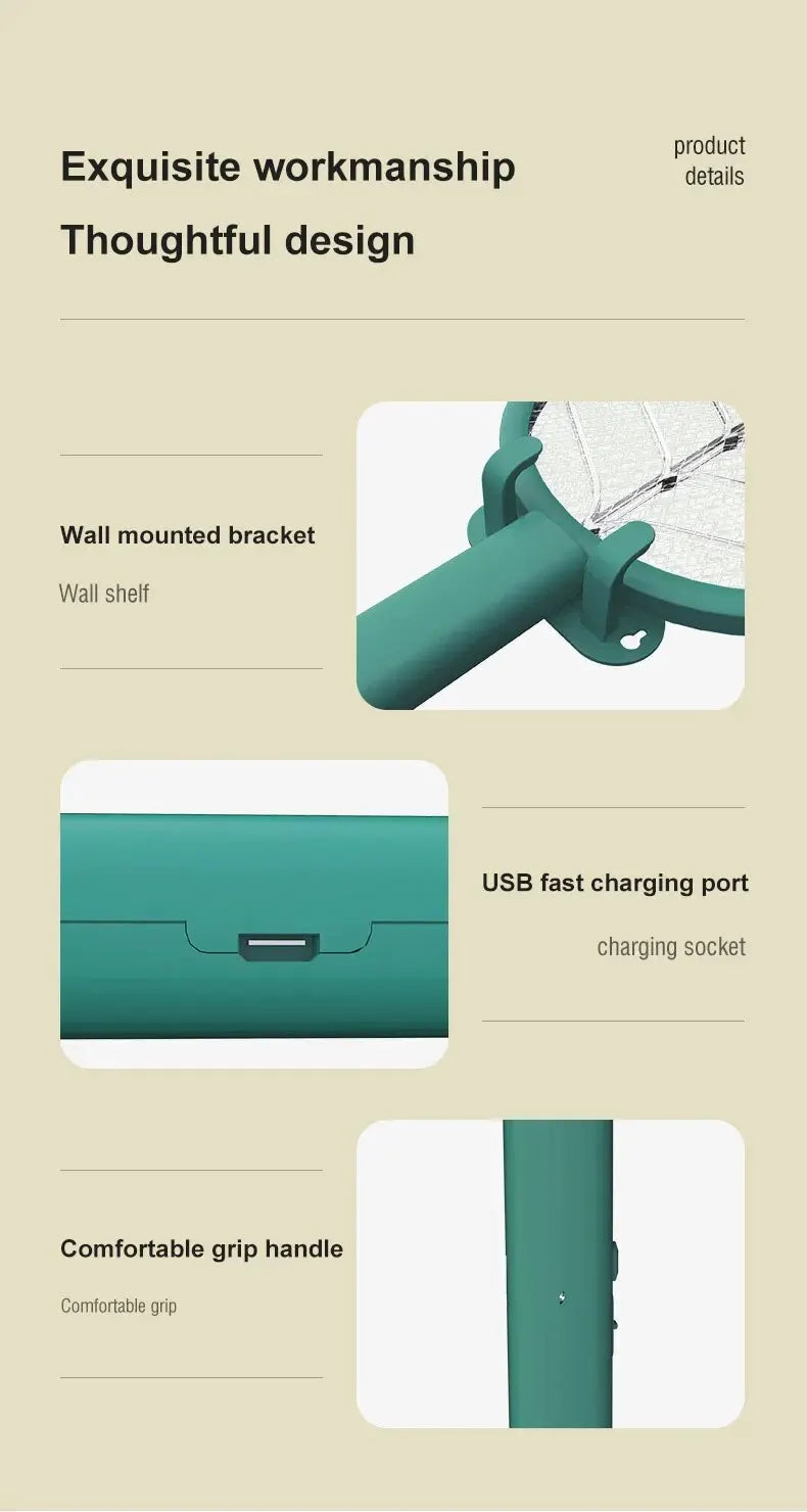 Fight back against pesky insects with the 1pc Electric Mosquito Killer Swatter USB Rechargeable Electric Household Safety Mosquito Killer Anti Mosquito Trap. This innovative device combines convenience and effectiveness, featuring a powerful electric swatter that is both user-friendly and highly efficient. Whether you're camping, enjoying a BBQ, or simply relaxing at home, this mosquito killer is your ultimate defense against unwanted bugs. With its USB rechargeable battery, you can easily power up this swatter and eliminate mosquitoes quickly and safely, ensuring a comfortable environment for you and your loved ones. Product Highlights. USB Rechargeable: No more disposable batteries; simply charge it via USB for a sustainable choice. Safe and Effective: Designed to zap mosquitoes on contact, offering an immediate solution to your insect problems. Lightweight and Portable: Weighing only 240g, it is easy to carry and perfect for outdoor adventures. Durable Construction: Made from high-quality ABS plastic and electronic components for long-lasting use. Eco-Friendly: No harmful chemicals involved, making it safe for household environments.