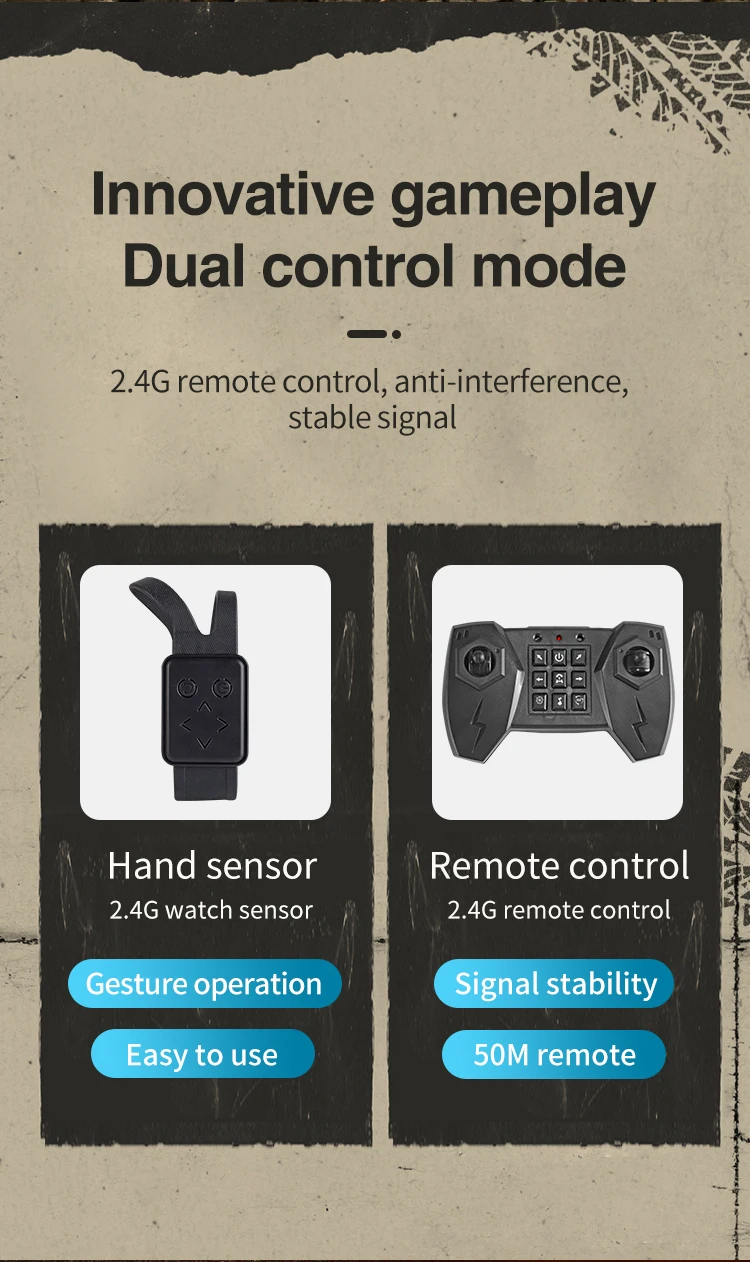 【Modos DE Control DE DOBLE dirección】nuestro coche de acrobacias rc se actualiza con 2 formas de control: Control remoto del reloj del sensor de gravedad. Solo necesita usar un reloj de detección de gestos y dar un gesto, y el coche de control remoto actuará en consecuencia. O puede controlar fácilmente el control remoto con una fuerza de transmisor de 2,4 ghz, que es sensible y sensible, se puede manipular incluso desde una distancia lejana. (No puede controlar el juguete del coche de dos vías al mismo tiempo).