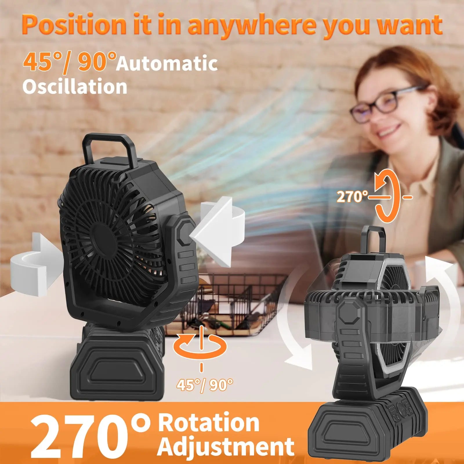 20,000mAh Camping Fan with LED Light β Wireless Rechargeable Outdoor Air Circulator with Hanging Hook