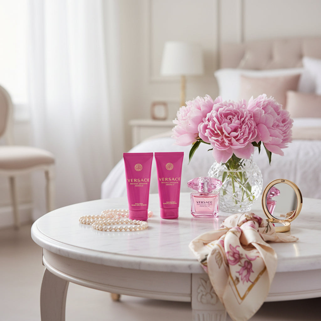 Indulge in luxurious elegance with the Versace Bright Crystal Absolu 4-Piece Gift Set, a vibrant collection crafted for the woman who radiates confidence and charm. This premium set includes the iconic Bright Crystal Absolu Eau de Parfum, paired with a perfumed body lotion and shower gel to enhance the fragrance experience with layered, long-lasting scent. Completing the set is a stylish black Versace cosmetic travel case, designed with gold accents for a chic and sophisticated touch. Perfect for gifting or personal pampering, this set delivers beauty, glamour, and timeless designer appeal.
