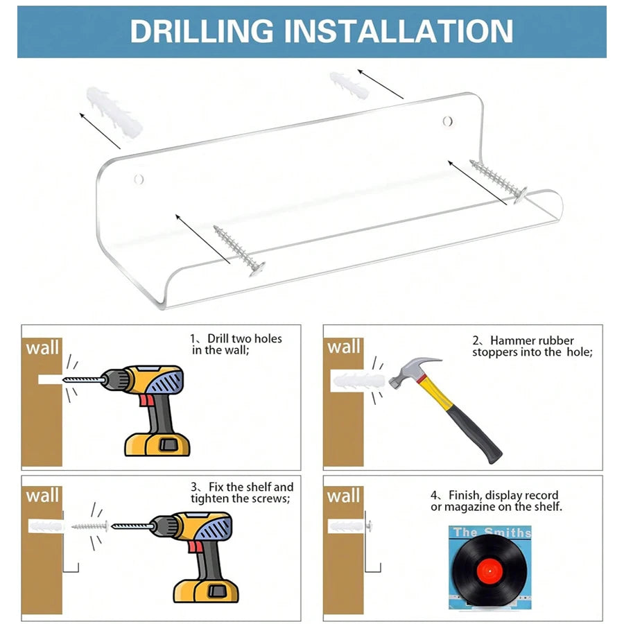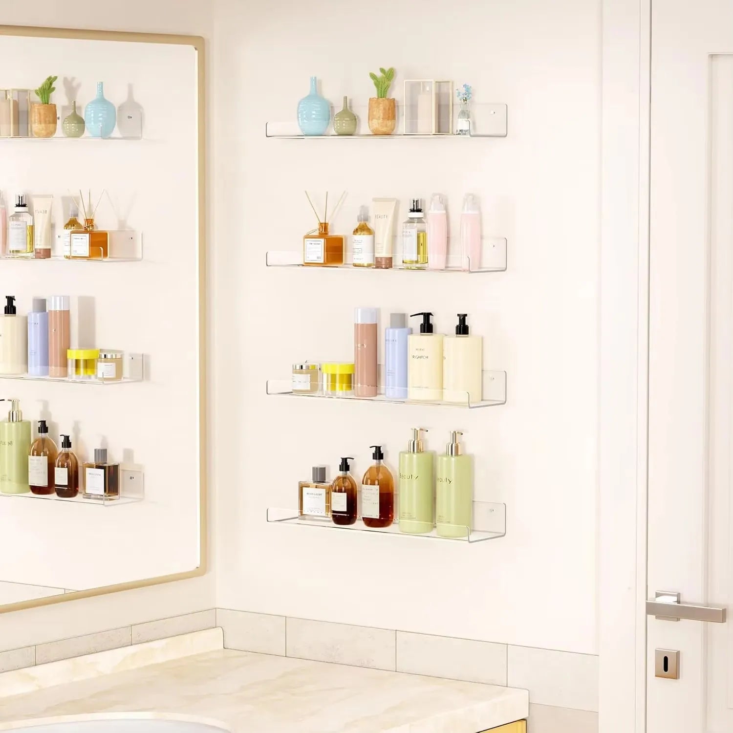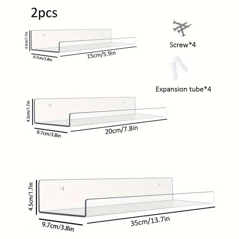 2pc Clear Acrylic Storage Rack Wall Mounted Shelf Organizer