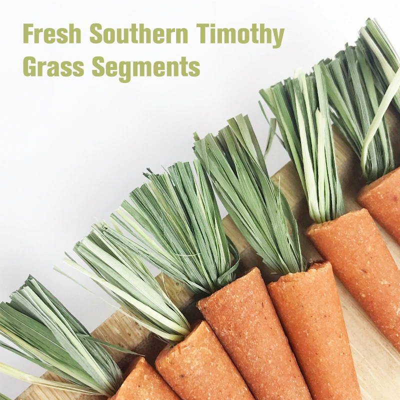 Carrots rich in carbohydrate and sugar provides energy. Not only its great taste, but also its adorable carrot shape look will absolutely fascinate your little bunny, hamster and guinea pig.
