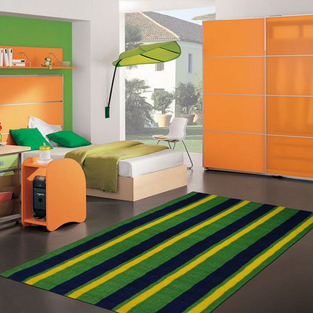 • Vibrant striped rug design adds cheerful color and charm to kids spaces.