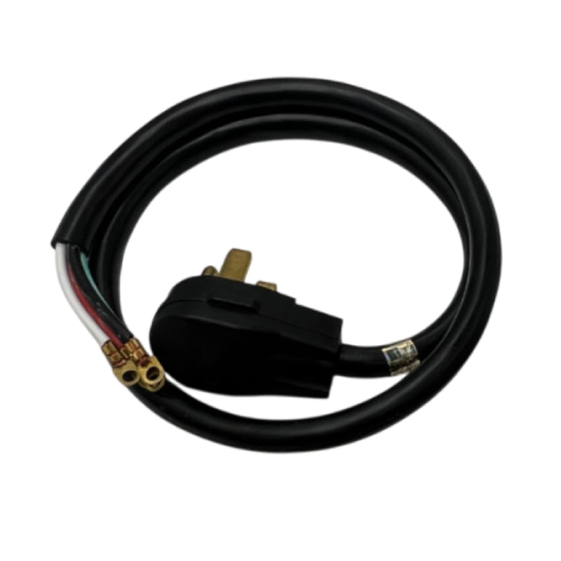 The 3 Arrow 4-Prong Range Cord is designed for universal compatibility with most free-standing electric ranges. Featuring a durable 4-foot heavy-duty construction, it safely handles up to 40 amps for efficient power delivery. The cord includes ring terminals for a secure connection and a molded plug for a snug, reliable fit.