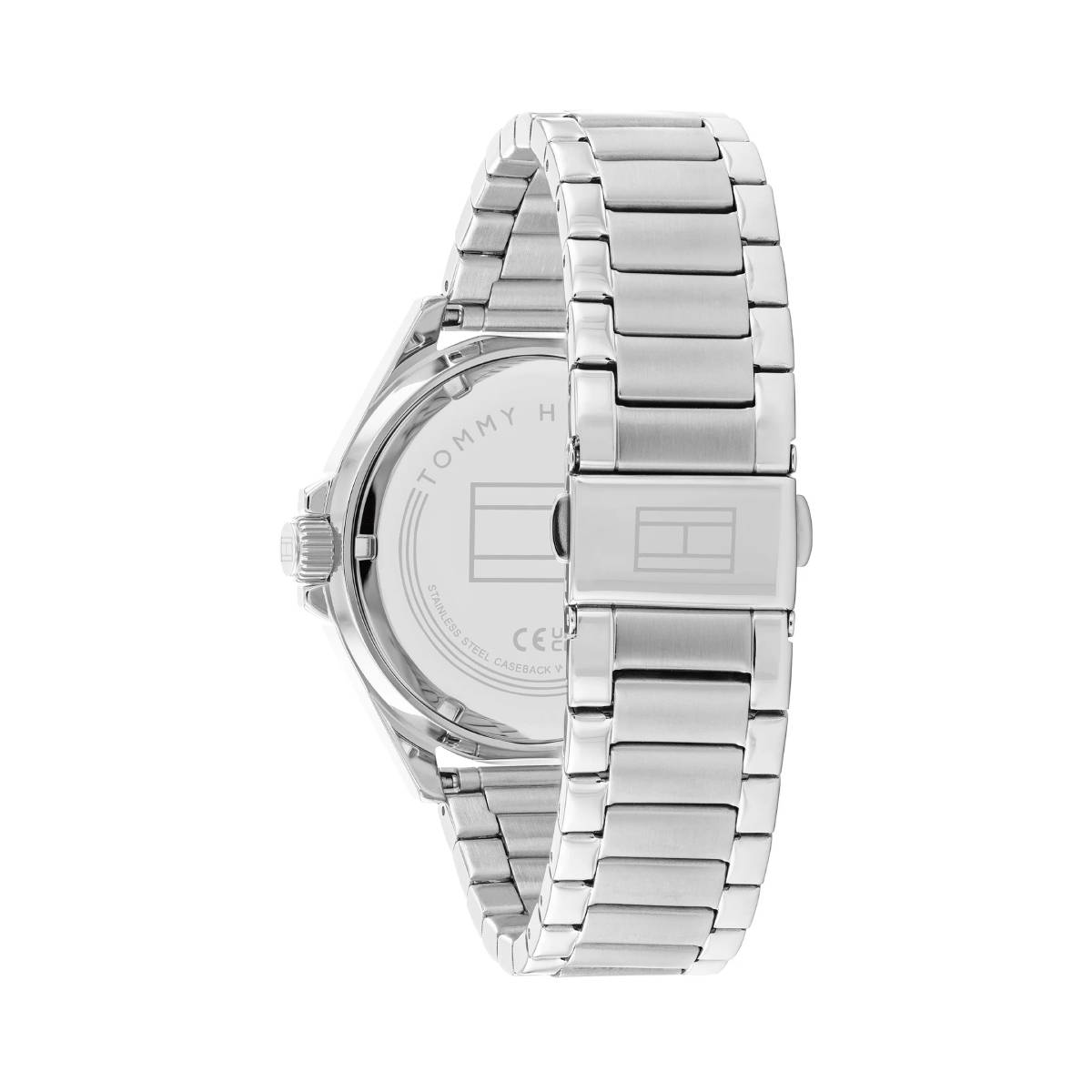 The Tommy Hilfiger Logan is a sleek men's watch featuring a 43mm silver stainless-steel case. Its bold blue dial is shielded by durable mineral glass and offers clear visibility with luminescent elements. Powered by a reliable quartz movement, it combines functionality with style. With a 50m water resistance rating.
