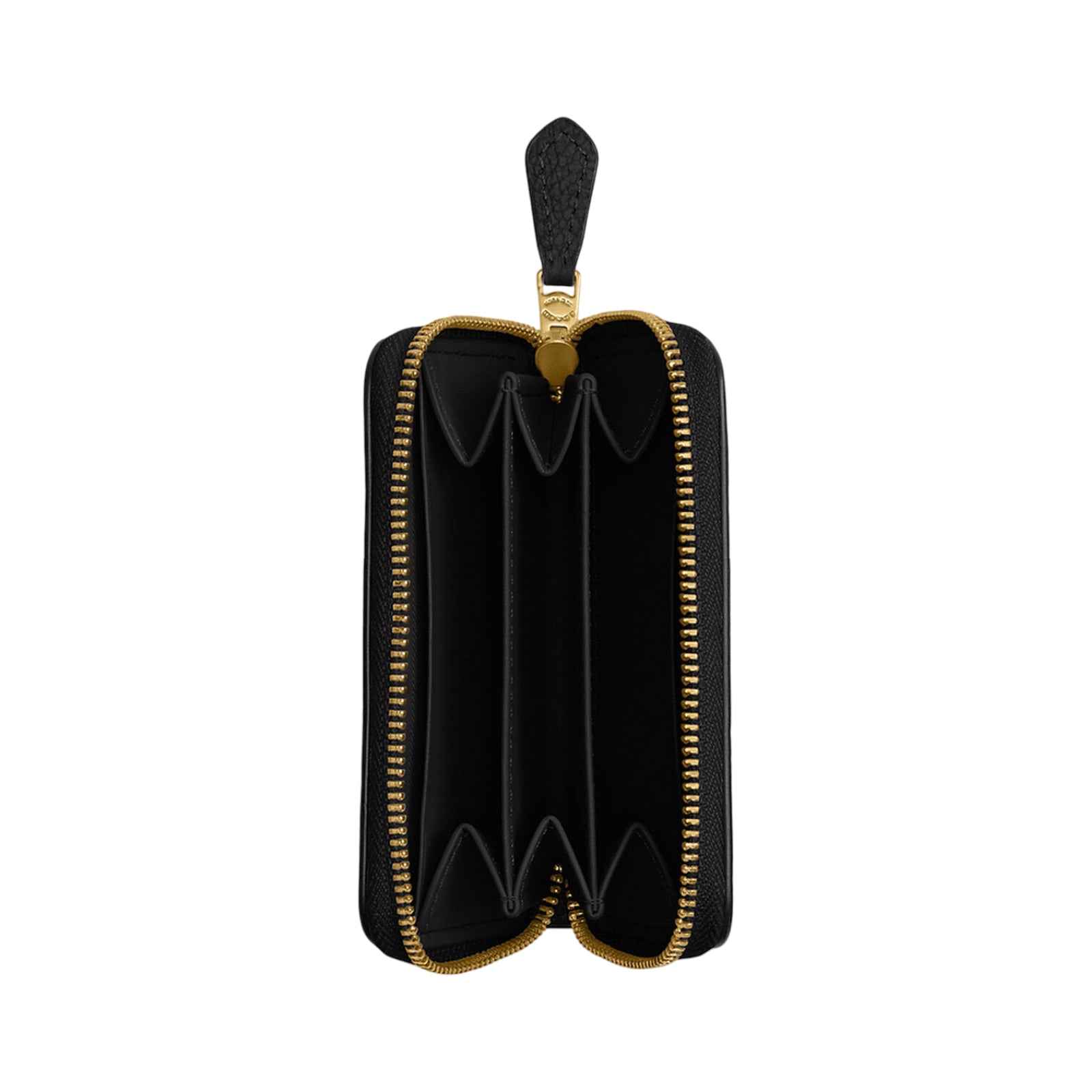 This polished pebble leather case combines refined craftsmanship with everyday practicality, designed with signature hardware and a slim silhouette that fits effortlessly into pockets or small bags. Its accordion-style gusseted interior offers smart organization with two card slots, three open compartments, and a secure zip-around closure to keep essentials neatly contained. Finished with an exterior open pocket for quick-access items, it’s a compact yet functional accessory built for modern convenience.