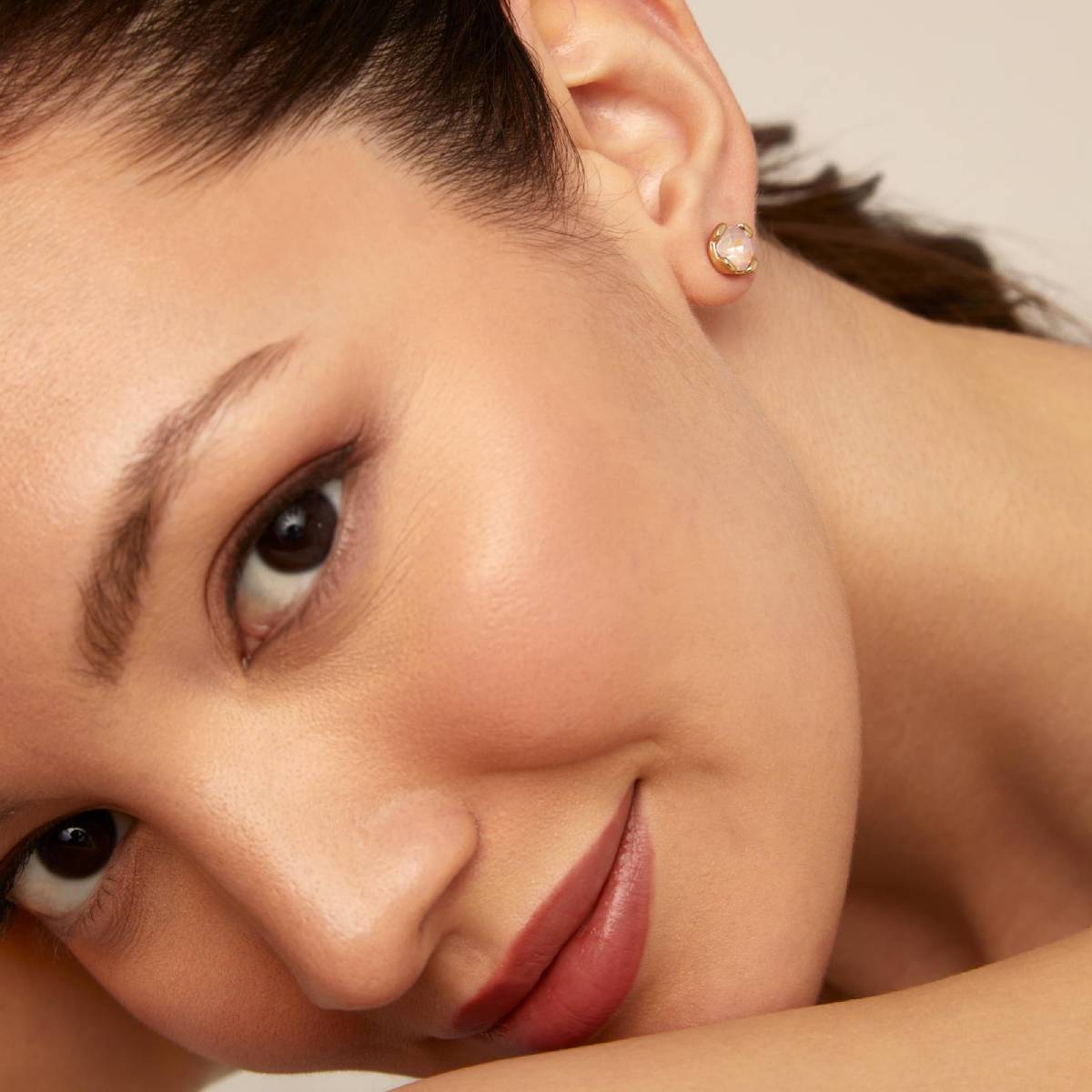 - Earrings with dazzling pink faceted crystal