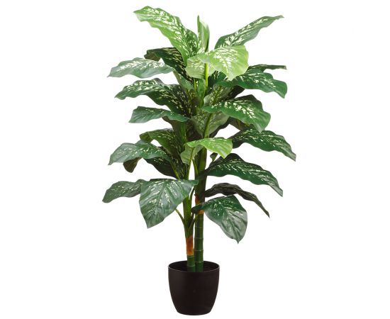 This 4' double trunk silk dieffenbachia plant with a plastic pot would be the perfect addition to your home. This enchanting faux plant will lift the aesthetic of any space. Its striking leaves will add a touch of warmth. Enjoy the plant because of its realistic details and natural charm.